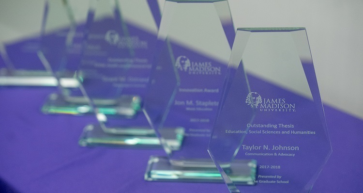 The Graduate School celebrates the excellence of James Madison University graduate students at the Showcase of Graduate Student Scholarship & Creative Activities. Students from JMU's masters, doctoral, and graduate level certificate programs share their work with peers and faculty in a professional conference setting. The Graduate Showcase highlights research and scholarship through presentations, poster sessions, installations and performances.
