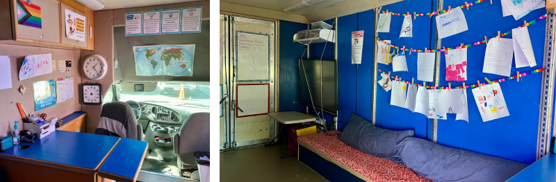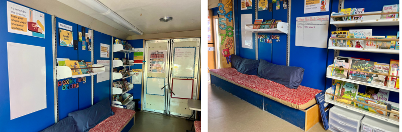 The Gus Bus is more than just a mobile library; we also do educational lessons and fun activities with our students! We love to display student work from projects here on the buses!