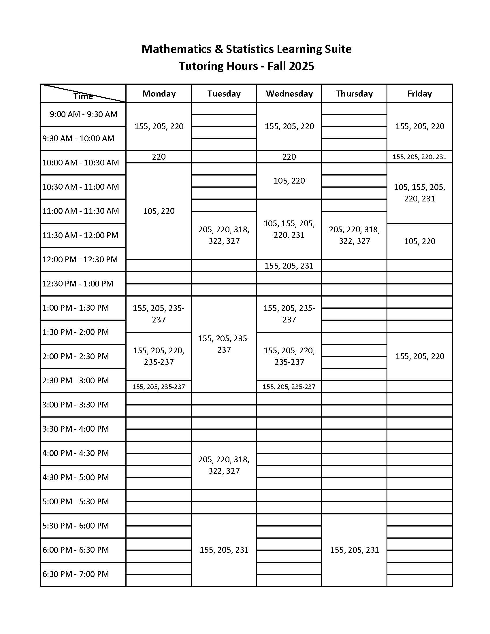 Visit the Mathematics and Statistics Learning Suite in Roop G25!