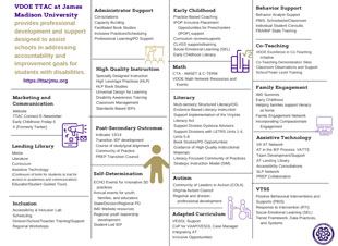We provide services across multiple areas that focus on inclusion, access to grade-level content, behavioral and social-emotional supports, high quality instruction, assistive technology and transition. These services can be consultations, professional development, resource dissemination, or customized options.