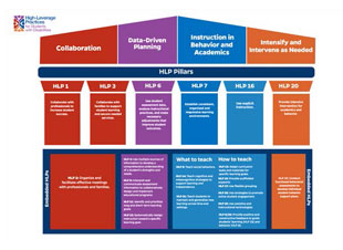 HLPs are used in our work because they provide a clear, shared, research-aligned framework for improvement. HLPs narrow the focus of our work to core practices that have the highest impact. This keeps improvement efforts targeted and manageable. We can offer observable, teachable actions educators can implement immediately.