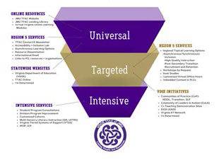 We provide services through a tiered system of supports which varies in intensity, asynchronous and synchronous options, and types of services based on specific goals of your division, school or educators. A variety of regional, online and state-wide services are included in our universal, targeted and intensive tiers.