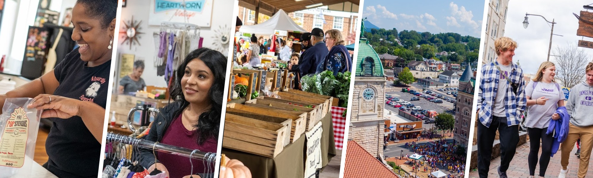 The historic downtown district is one of the most popular areas of Harrisonburg, comprised of more than 25 restaurants, 45 shops, a vibrant arts and entertainment culture, and a number of community events throughout the year. Locally-owned and operated restaurants feature a variety of ethnic cuisines, including traditional Americana, Asian Fusion, Caribbean, Cuban, Ethiopian, Indian, Mexican, and Venezuelan. Local shops provide the opportunity to browse for everything from boutique clothing and accessories, handmade jewelry, and international fair trade items, to antiques and vintage home goods, recreation equipment, records, and musical instruments. The Harrisonburg Farmers Market is nationally recognized for its work. The Friendly City Food Co-op provides workshops and a place to shop for local produce and groceries. Take a stroll downtown and enjoy the historic charm of yesterday paired with the adventure of today!