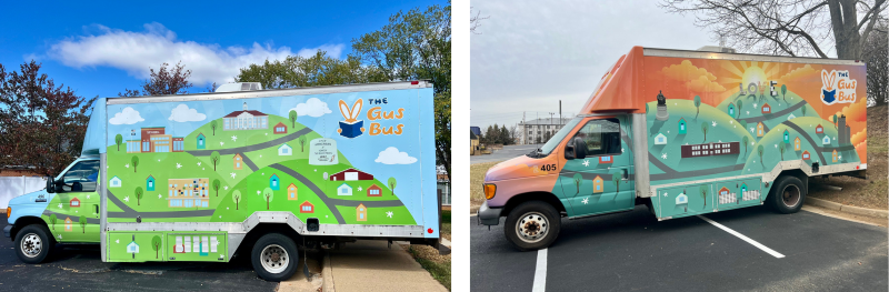 The Gus Bus is more than just a mobile library; we also do educational lessons and fun activities with our students! We love to display student work from projects here on the buses!