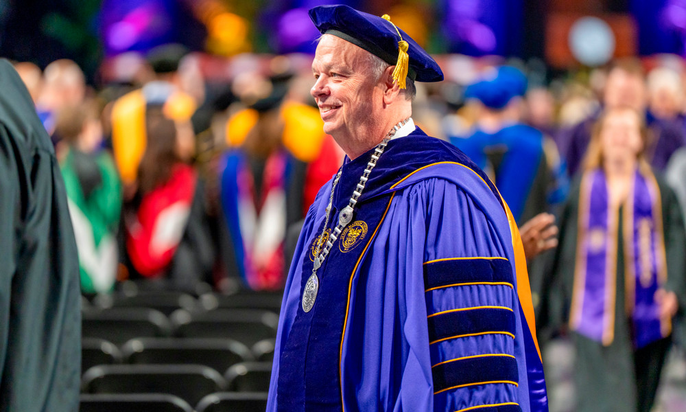 “I believe our future is not to color inside the lines or work inside the box,” he said. “Our future is not to be like every other peer institution, however noteworthy or accomplished they may be. Let’s be a legend! Let’s set ourselves apart and break out of higher-education stereotypes. … Let’s challenge the status quo and dare to try, sometimes fail, but always march to a different drummer.”