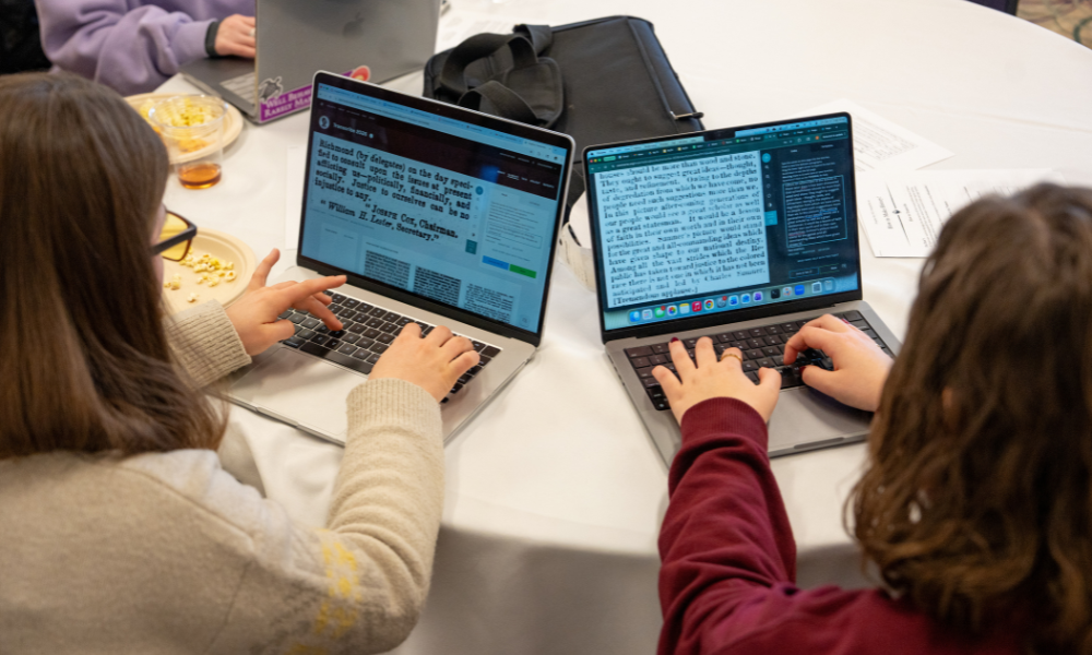 Students were given eighty minutes, broken up into sections by four live broadcast events, to transcribe a plethora of historical documents from across the country. Justice Studies major Kat Kalb (’28) attended the event to receive extra credit for her social justice class paired with a passion for learning about and participating in history.