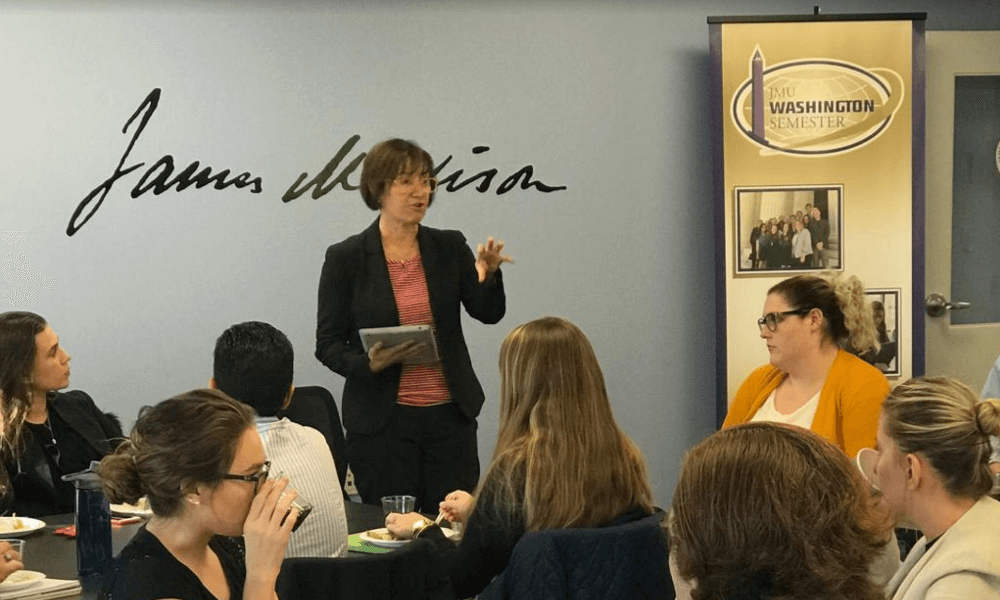 On November 8, 2018, On-Site Director of JMU Florence Programs, Caterina Paolucci, gave a talk on populism at the JMU Washington Center. Her presentation, entitled “The Empty Box of Populism—Dangers of Emptiness in Politics,” comes at a crucial time for democratic politics, given the increasing relevance of populist movements around the world. Her talk focused less on the policy contents of populism and more on its conceptual framework. One of the main driving factors in academic work on populism has been the search for an adequate definition: is populism a strategic tool set or an ideology? In her talk, Professor Paolucci referred to populism as being more of a tool box than a set of coherent ideas, a box which can be filled on each occasion by different ideologies, lending them a political frame and a set of standard, but adaptable, tools that are proving quite effective across the political spectrum. This ideological “emptiness” or neutrality has led to the spread of different varieties of populism throughout most of Europe. An important aspect that explains the success of populism is its rhetoric. Populist rhetoric functions by simplifying the political space with direct and ordinary language, which allows populist leaders to sell themselves as being one of the masses and not part of the political elite. This continuous weaponization of language has spread to mainstream parties, begging the question: if mainstream politicians use populist rhetoric, does it not make them populist? Paolucci stresses the importance and relevance of populism when discussing EU politics. In order to reverse the trend of rising Euroscepticism in the EU, it is crucial to understand the essence of populism if there is any hope of defeating it.