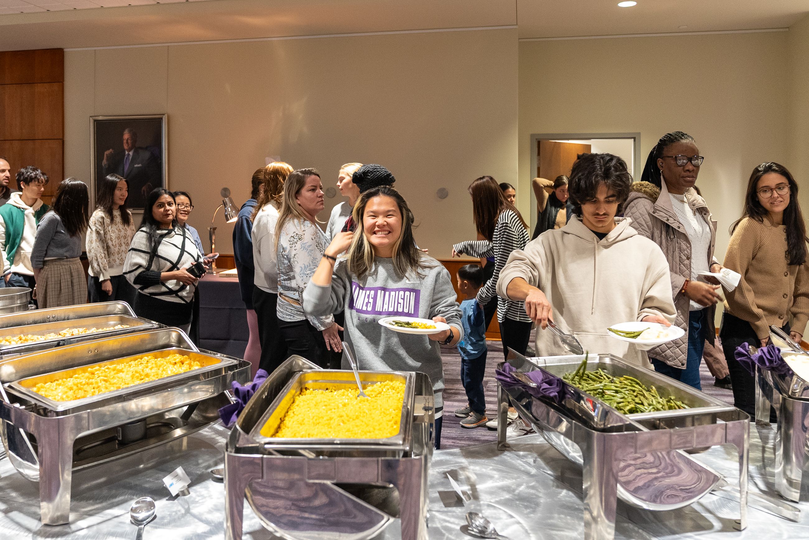 Thanksgiving is a U.S. holiday centered on bringing people together and sharing what they’re thankful for. Since gratitude and togetherness are widely shared values that exist in many cultures, Thanksgiving can feel familiar to people from diverse backgrounds. The addition of a shared meal creates a unique experience for our international community to feel welcome both in the U.S. and especially at JMU.