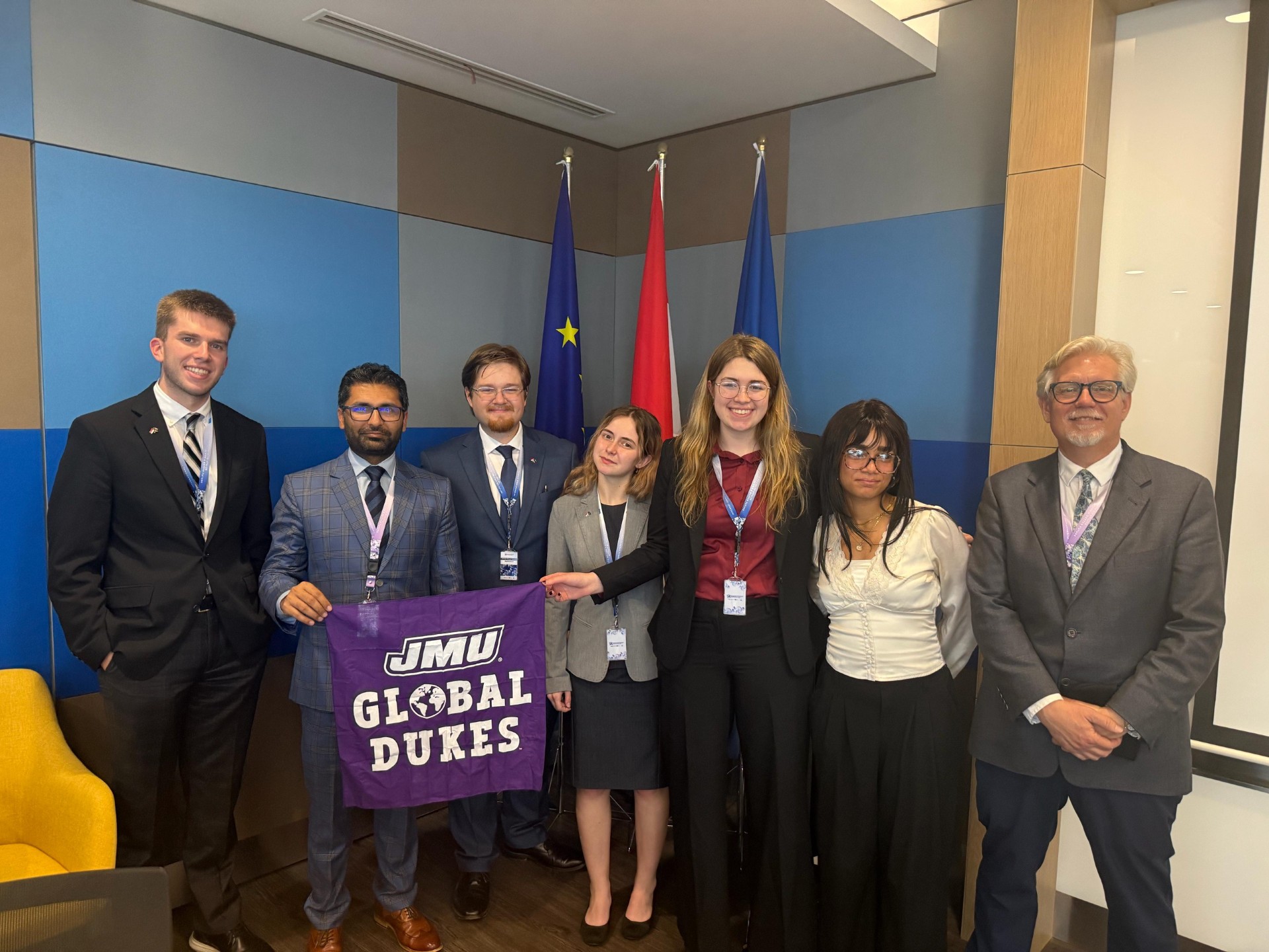 The students participated in workshops with participants from all over the globe, learned about Indonesia, and participated in a EU simulation competition. We had two JMU teams in the EU competition and both of them won. Congratulations to our teams for their hard work.
