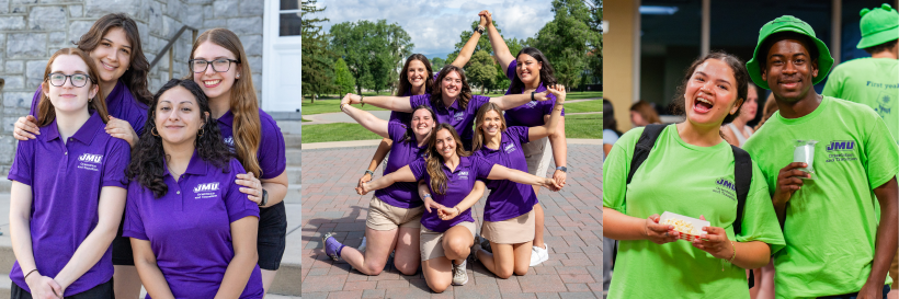 The Office of Orientation and Transition provides a variety of opportunities for current students to serve JMU by assisting first-year and transfer students in their transition to campus. Peer connection is a powerful means to show an authentic and dynamic view of the JMU community. Student staff contributions give life to our programs and leave impressions on incoming students, guests and one another that last a lifetime.